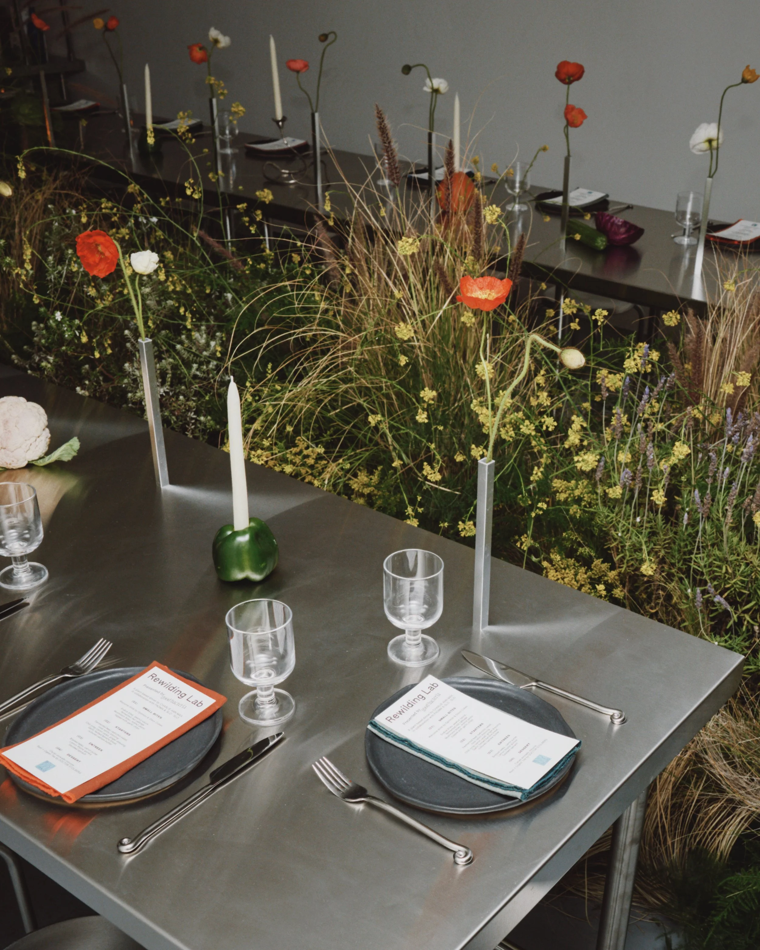 An intimate evening celebrating the opening of the Rewilding Lab for Good Bacteria, bringing together friends and collaborators around biodiversity and plant-based living. In collaboration with Padma Earth, the dinner centered on conversation, seasonal food, and thoughtful design. All ceramics were produced in-house, creating a cohesive, tactile dining experience. The evening featured a menu by Chef Charlie Ann Max, beverages by Optimist Drinks and Disco Cubes, and a plant installation by Brrch Floral. The gathering honored material, ecology, and shared experience at the table.